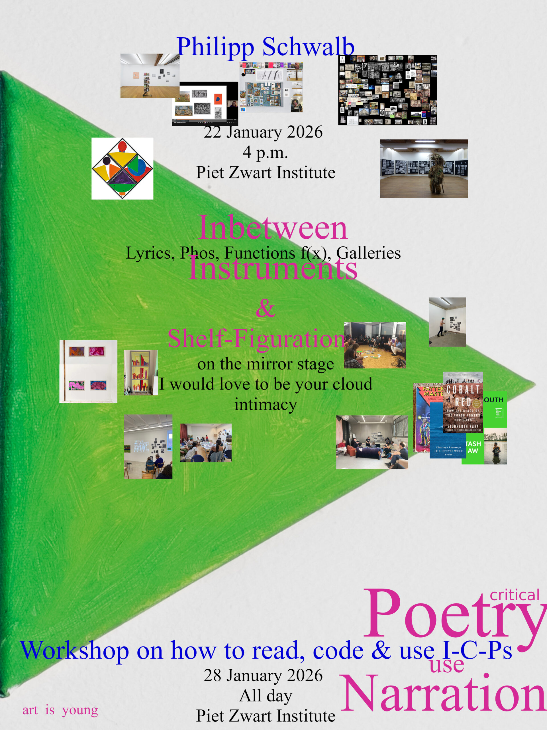 On 22 January 2026 at 16:00, there will be a lecture from Philipp Schwalb, ‘Inbetween Instruments & Self-Figuration’ which all PZI Master students are welcome to attend. 3th floor Wijnhaven, Project Space WH.03.220. And on 28 January 2026, there will be a full-day workshop (10.00 – 16.00) on how to read, code & use I-C-Ps ‘Critial Poetry use Narration’. […]